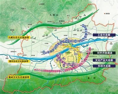 大西安产业结构规划图 高新区创业咖啡街区 秦岭风光 浐灞美景 建设中的西安奥林匹克体育中心 市民参观西安市规划馆 沣东自贸产业园 古城墙和护城河 钟……