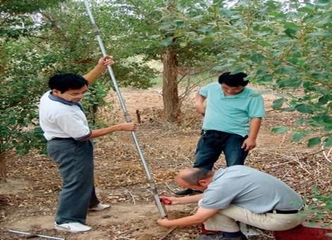 邵明安(左)在甘肃临泽开展野外调查时打土钻 西北农林科技大学供图 他生长在南方的鱼米之乡,却在西北旱塬默默耕耘了36年。为研究水分在干旱半干旱土壤中的运……