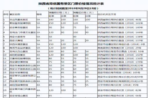 记者9月29日从陕西省物价局官方网站了解到,“十一”黄金周前夕,陕西省秦始皇帝陵博物院、华清宫、法门寺、黄帝陵、大雁塔、大慈恩寺、乾陵、汉阳陵、西安碑林……
