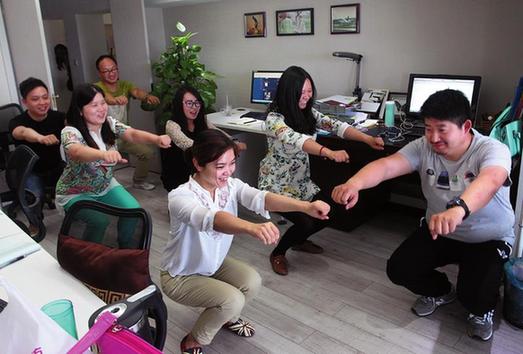 午休时间公司员工掀起减肥热现代社会的压力使越来越多的人身体呈亚健康状态,身材也变得“虚胖”起来,减肥已经成了人们口中流行词之一。在西安高新区一家公司,……