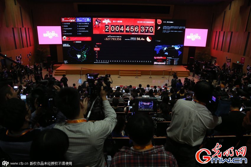 2014年11月11日凌晨,杭州,天猫平台“双十一”正式开启,在第2分53秒,交易额突破10亿元。第一分钟交易额达到5451万,其中68%来自无线端。自2009年起,由天猫发……