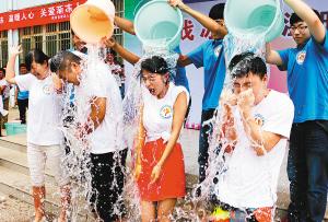 西安市民迎接冰桶挑战 陕西约2000“渐冻人”