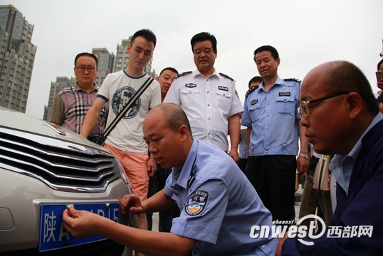图注:西安市车管所民警为第200万辆机动车挂牌西部网讯(记者 孙鹏) 截止7月3日,西安市全市机动车保用量突破200万辆大关。上午10时左右,交管部门在车管所举行“第……