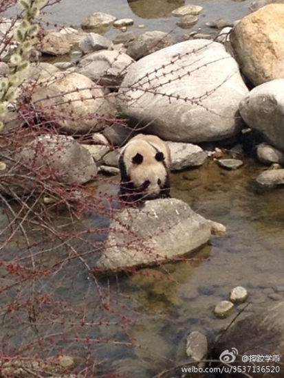 西部网讯(记者 熊惠玲) 今天(3月20日)中午12点左右,在陕西洋县华阳镇景区,一只野生大熊猫光顾了景区内的鸳鸯河,由于被人群围观,这只大熊猫在河边徘徊不……