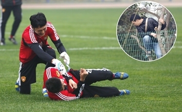 国足西安首训,于海和杨智打闹西部网讯(记者 温泉)今天(11月7日)下午,中国国家男子足球队集训第一批的16名队员在陕西省体育场外场进行了首次训练,虽然首堂……