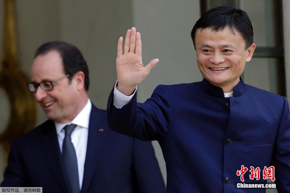 当地时间2015年3月18日,法国巴黎,阿里巴巴集团CEO马云抵达爱丽舍宫,与法国总统奥朗德举行会谈。
