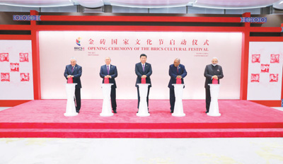 同日,金砖国家领导人共同出席金砖国家文化节启动仪式暨文化图片展。习近平和其他金砖国家领导人在各国印章柱上按下印章,对面屏幕上同时显示出金砖国家中文国名篆刻印文,共同启动文化节开幕式。随后,五国领导人共同参观金砖国家文化图片展,并观看金砖国家首部合拍影片《时间去哪儿了》片花。