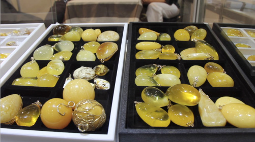 第18届国际琥珀展上的琥珀展品。人民网记者 暨佩娟摄