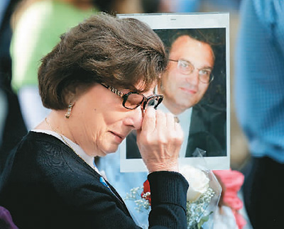 9月11日,美国纽约举办活动纪念“9·11”恐怖袭击事件16周年。 图为一名手持遇难者照片的女子。