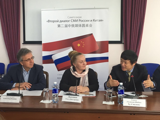 9月13日,与中国北部边城黑河市隔江相望的布拉戈维申斯克迎来了一场媒体盛会——由环球时报社和俄罗斯塔斯社联合举办的第二届中俄媒体对话会在这里成功举行。来自中俄20多家媒体机构和科研院所的30多名新闻工作者和专家学者济济一堂,就中俄关系特别是边境地区合作以及如何通过媒体合作增进两国人民之间的相互了解和友谊进行了坦诚热烈的讨论,并就重大的全球热点问题交流了看法。