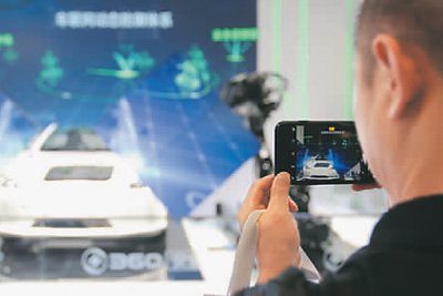 | 图三为在上海举行的2017年网络安全博览会暨网络安全成就展上,一名观众在拍摄展台上的网络安全概念车。 |