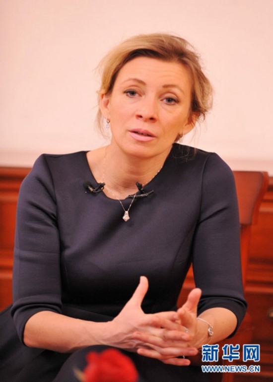 俄罗斯外交部新闻司司长、新闻发言人扎哈罗娃接受采访。新华网发 徐昕摄