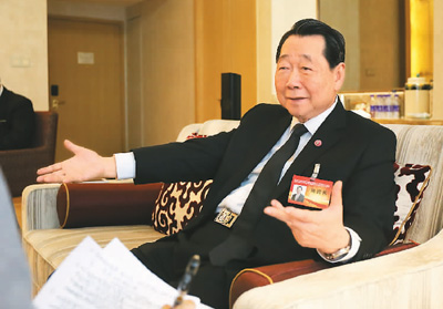 | 图为谢国民接受本报记者采访。 |