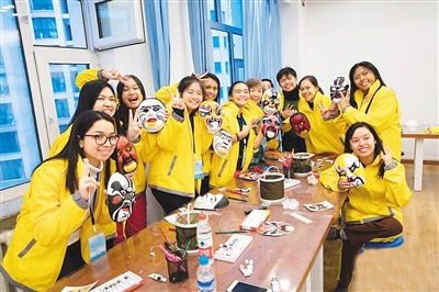 图为华裔青少年展示她们的脸谱作品。MAp安康新闻网