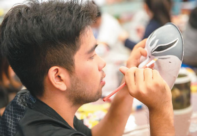 图为一名华裔青少年在进行脸谱绘画。MAp安康新闻网