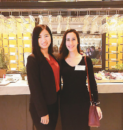 | 就读于美国康奈尔大学酒店管理专业的张悦芊(左)积极参加校内外的活动。图为她在学院校友会活动上的留影。 |