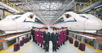 | 12月4日,西成高铁首发乘务班组在中国铁路成都局集团有限公司成都动车段亮相。 |