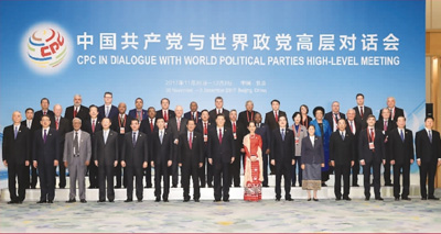 2017年11月30日,中国共产党与世界政党高层对话会在北京召开。12月1日,习近平总书记在会上发表讲话时这样说:中国共产党愿广交天下朋友。长期以来,中国共产党同世界上160多个国家和地区的400多个政党和政治组织保持着经常性联系,“朋友圈”不断扩大。面向未来,中国共产党愿同世界各国政党加强往来,分享治党治国经验,开展文明交流对话,增进彼此战略信任,同世界各国人民一道,推动构建人类命运共同体,携手建设更加美好的世界!