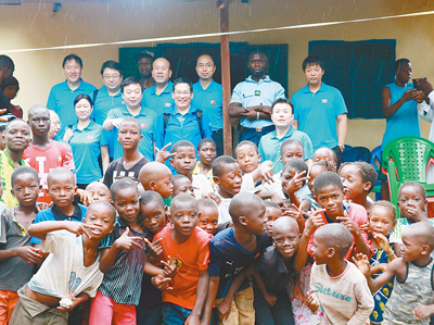 | 医疗队慰问在与埃博拉病毒斗争中牺牲的几内亚医护人员家属。 |