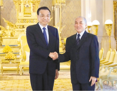 国务院总理李克强当地时间1月11日中午在金边王宫会见柬埔寨国王西哈莫尼。