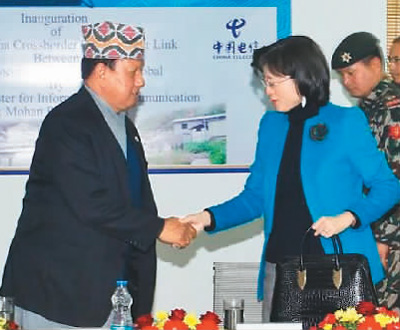 1月12日,中国电信集团公司与尼泊尔电信公司在尼泊尔首都加德满都举行两国跨境光缆开通仪式,这标志着尼泊尔正式通过中国的线路接入互联网。
