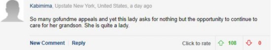 美国纽约的网友Kabimima:“众筹平台GoFundMe上有各种诉求,而这位女士却没有要求任何东西,只是想要能够继续送她的孙子上学。她真是了不起。”