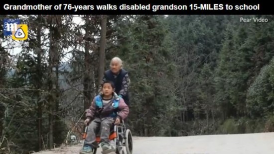 英国《每日邮报》1月22日发表文章,关注中国广西76岁老太史玉英的感人故事。老人每天都会步行24公里的路,用一把破旧的轮椅推着患脑瘫的孙子上学。报道称,她“4年如一日,风雨无阻,意志坚强。”