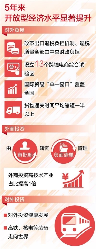 2017年,中国与“一带一路”相关国家进出口总额1.1万亿美元,增长了14.8%,高于全国外贸总体增速3.4个百分点。江西省商务厅厅长王水平代表认为:“‘一带一路’给开放型经济注入发展新动力。推动‘一带一路’国际合作,应继续推动国际大通道建设,深化沿线大通关合作,促进铁路、公路、港口等基础设施互联互通,进一步提高贸易便利化水平。”