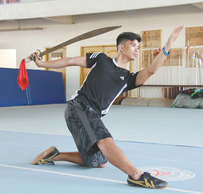 | 准备参加东南亚运动会的菲律宾国家武术队队员在进行训练。本报记者 孙广勇摄 |
