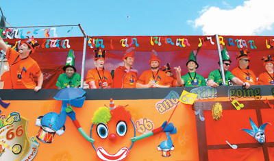 图为人们参加狂欢节花车游行。68N安康新闻网