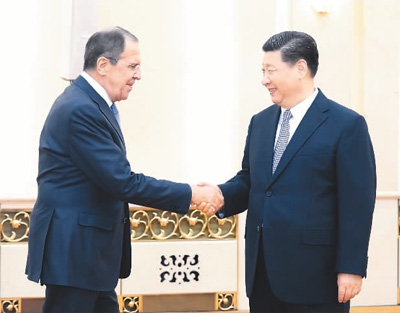 | 4月23日,国家主席习近平在北京人民大会堂会见俄罗斯外长拉夫罗夫。新华社记者 姚大伟摄 |