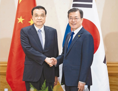 文在寅表示,祝贺韩中日三国领导人会议取得积极成果。前不久南北首脑会晤取得成功,感谢中方的大力支持与合作。下一步在朝美首脑会晤、实现半岛和平过程中,希望继续得到中方的通力支持。今年是韩中战略合作伙伴关系建立10周年,韩中两国关系得以恢复并实现正常化,希双方保持高层交往,巩固政治互信,推进务实合作,推动两国关系取得新进展。