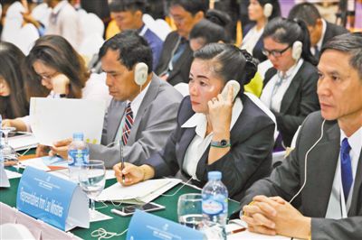 | 7月2日至3日,2018澜沧江—湄公河合作媒体峰会在老挝首都万象举行,与会代表正在倾听大会发言。本报记者 王斯雨摄 |