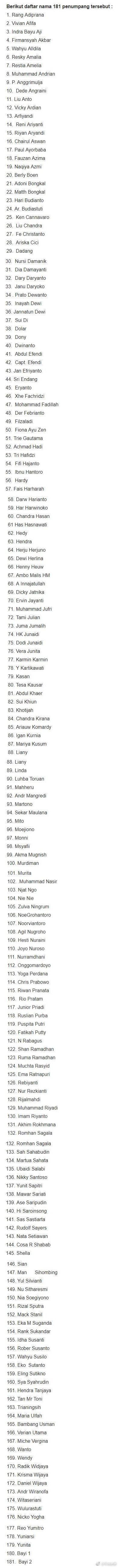 据俄罗斯卫星网报道,印尼国家搜救局发言人表示,此次坠机事件无人生还。据印尼媒体,机上乘客及机组人员名单已经公布: