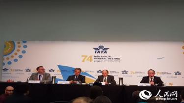国际航协负责人正在召开记者招待会。 李锋摄 人民网悉尼6月5日电记者 (李锋)由澳大利亚航空公司主办的第七十四届国际航空运输协会年会暨世……