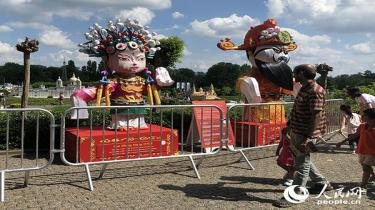中国彩灯吸引了游园者的目光。记者任彦摄 人民网布鲁塞尔6月5日电 (记者 任彦)不远处是埃菲尔铁塔和大本钟微缩景观,眼前是京剧脸谱、青花瓷……