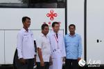 颂萨弥医生与同事们在流动诊所前合影。记者张志文摄 5月10日上午,中国援助柬埔寨流动诊所交接仪式在金边举行。首批20辆印有两国国旗图案和“中……