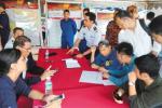 3月21日,一艘中国挖沙船在马来西亚附近海域倾覆。图为中国驻马来西亚大使馆人员在搜救现场与马方官员交流。(照片由……
