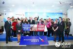 11月6日,乘坐美国航空首航北京-洛杉矶航班的乘客与美国航空的工作人员合影留念。摄影:吴美妮 人民网北京11月6日电 (杨铁虎、吴美妮)在……