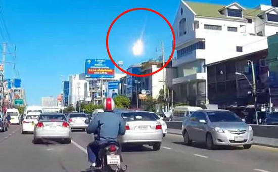 曼谷天降耀眼火球并爆炸 尾部拖超长白烟