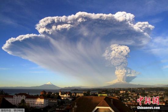 当地时间2015年4月22日,智利蒙特港,卡尔布科火山爆发,喷出的浓厚的火山灰和烟尘几公里外都能看见。中新网4月23日电 据外媒报道,22日,智利卡尔布科火山喷发,……