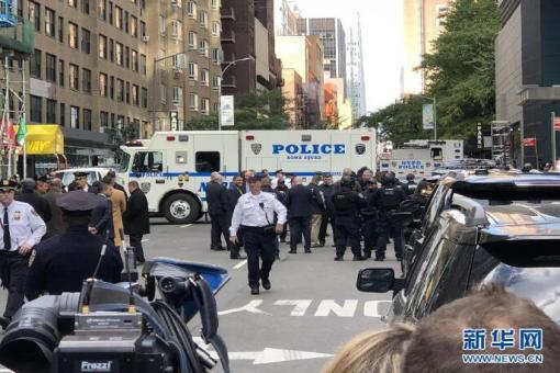 当地时间10月24日上午,美国有线电视新闻网位于纽约曼哈顿的办公大楼出现可疑包裹,楼内人员被紧急疏散。这是警察在街道上维持秩序。 新华社记者 李木子 摄 新……
