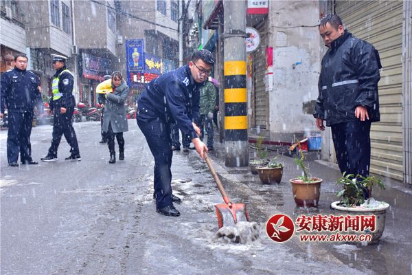安康新闻网讯(通讯员 吴磊)受强冷空气影响,2月21日上午,白河普降中到大雪,路面出现积雪结冰,车辆、行人通行困难。县城建监察大队迅速组织人员、车辆和融雪物资,对县城主干道和中小学校附近路段进行撒盐除雪。县交警大队民警全员出动,全力维护道路交通安全。wL2安康新闻网