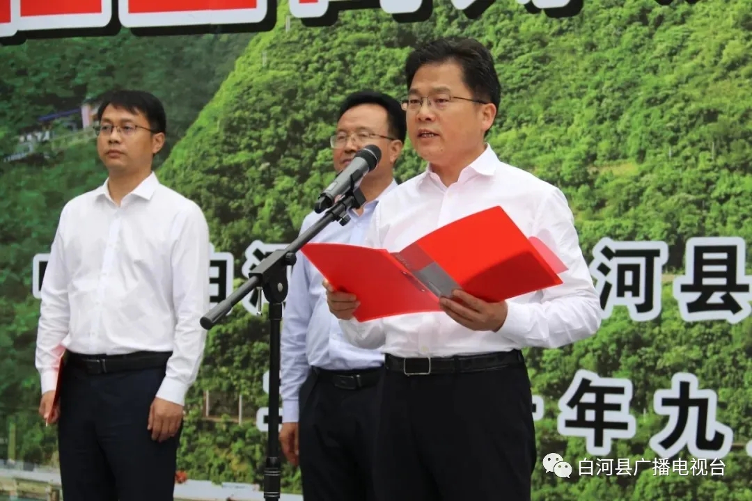 9月26日,白河县重点项目集中开(竣)工主会场在城关镇河街社区举行,河街“三项工程”及白郧汉江大桥正式投用。市委常委、副市长刘建平,郧西县委副书记、代县长王兵,郧西县人大常委会主任汪川文,郧西县政协主席王绪桔,县委书记李全成,县人大常委会主任何益新等领导出席,县委副书记、代县长王日新主持投用仪式。