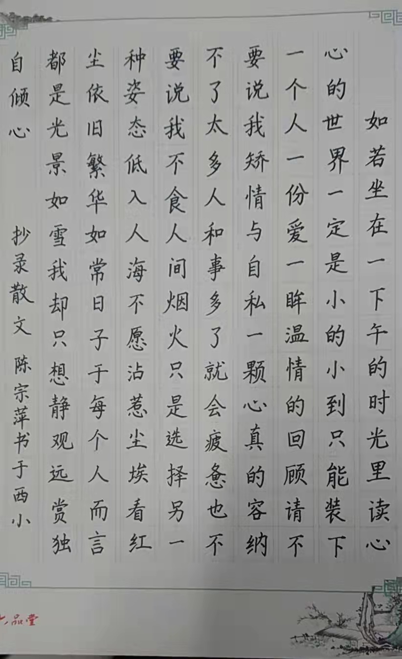 本次教师基本功大赛比赛内容为“三笔一画”,即硬笔字、粉笔字、毛笔字和简笔画。其中硬笔书写内容为教育方针,粉笔和毛笔书写内容为古诗《静夜思》,简笔画内容不限,自行创作。比赛现场,老师们聚精会神地书写,专心致志的绘画,墨香荡漾着整个校园。钢笔的一笔一画中规中矩,结构和谐,彰显字如其人的道理;板书则美观大方,横竖撇捺折,笔锋掠过,一股明丽清新之气扑人眉宇;简笔画勾画了了,像简明、得体、通俗的语言,传达着富有感染力的情愫。