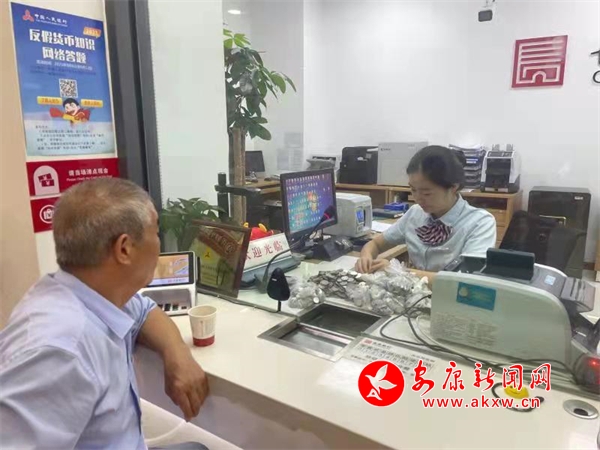 本网讯(通讯员 陈敏)近日,一位老大爷步履蹒跚来到长安银行白河县小微支行,表示之前看到该行进行的人民币知识宣传,想起来家里存了好多年的零钱,可以兑换一下。柜面员工了解情况后,考虑到零钱量比较大,而且全部是一角人民币纸币、旧版两角纸币和一元、一角的硬币,立刻安排两名工作人员,专门为老大爷进行清点。