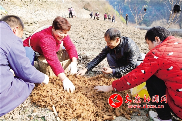群众抢抓春耕时机,在地头挑选黄姜种子准备种植