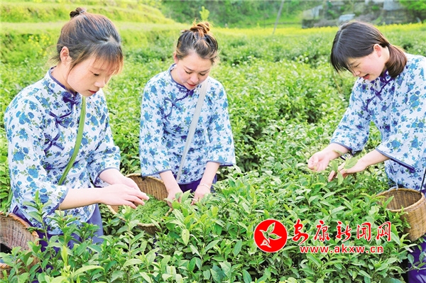 茶叶梯田坡坡相偎,缕缕茶香沁人心脾。白河县茅坪镇五峰茶叶种植基地里,千余名茶农手指翻飞,争先采摘鲜叶,山水交织间,展开一幅幅欣欣向荣的美丽乡村新画卷。