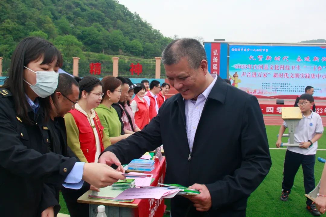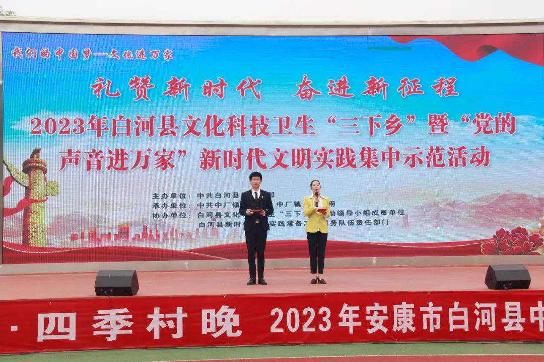 4月18日,白河县2023年文化科技卫生“三下乡”暨“党的声音进万家”新时代文明实践集中示范活动走进中厂镇,把党的创新理论和惠民政策送进千家万户,让广大群众在家门口享受文化科技卫生服务。