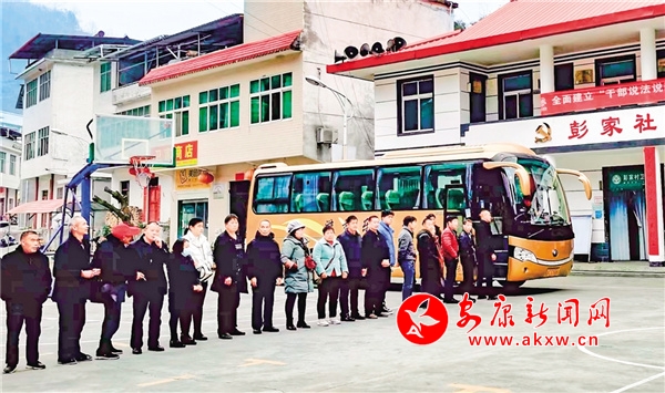 茅坪镇彭家社区的能人李言贵组织带领20多名群众,包车前往内蒙古承包的项目工地务工。